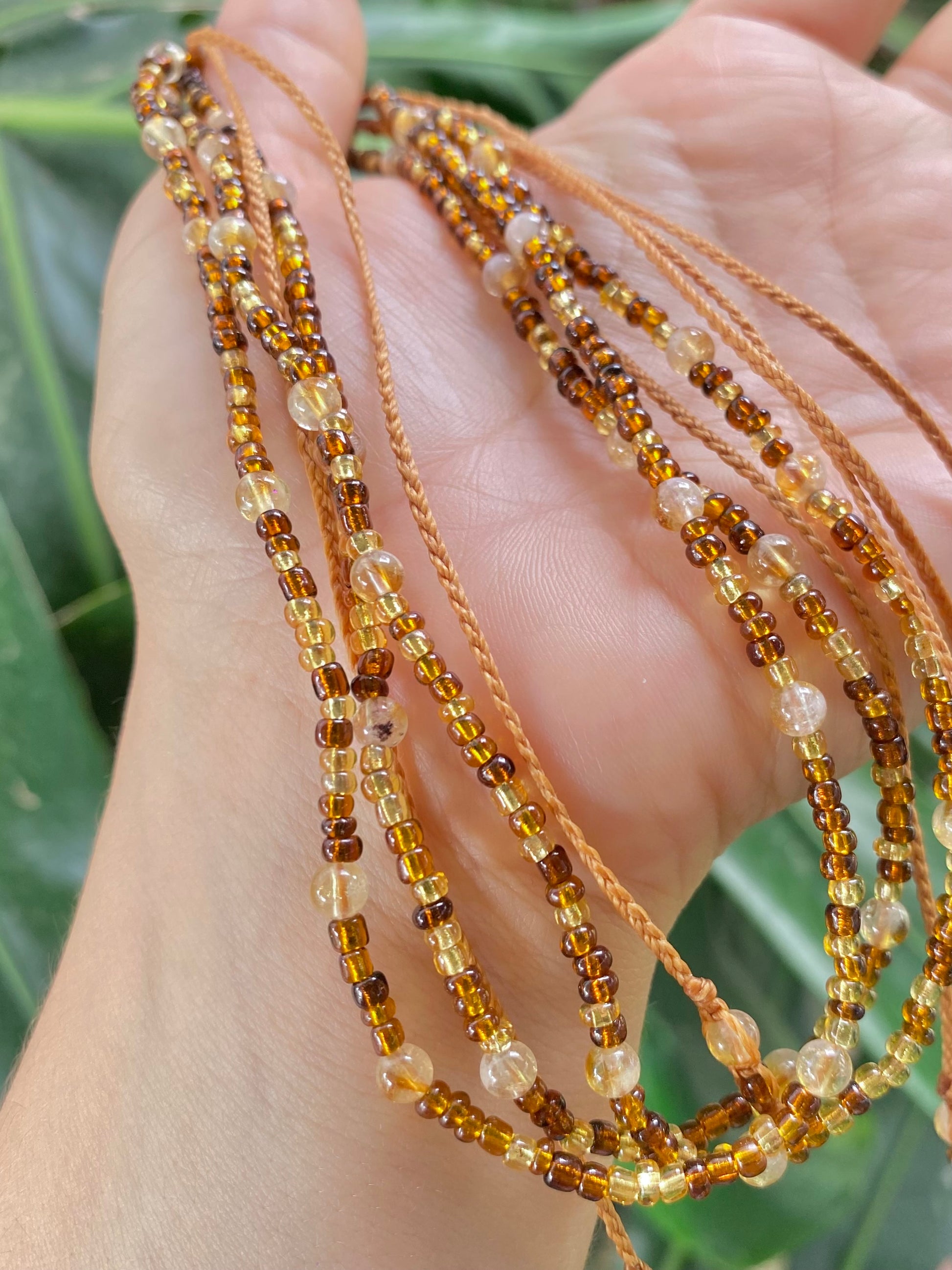Brynn is an earthy elegance, made with a mix of golden toned glass seed beads and glowy Citrine sprinkled through out.